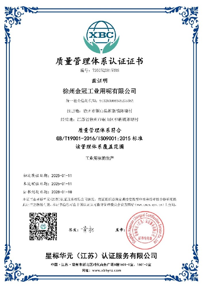 2025年1月11日,徐州金冠工業(yè)用呢有限公司順利通過了ISO9001:2015質(zhì)量管理體系認(rèn)證、ISO14001:2015環(huán)境管理體系認(rèn)證、ISO45001:2018健康管理體系認(rèn)證。此“三證”通過認(rèn)證,提升了企業(yè)的管理水平···