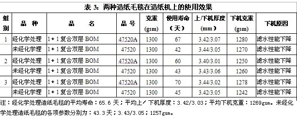 5 化學處理造紙毛毯在造紙機上的使用效果
