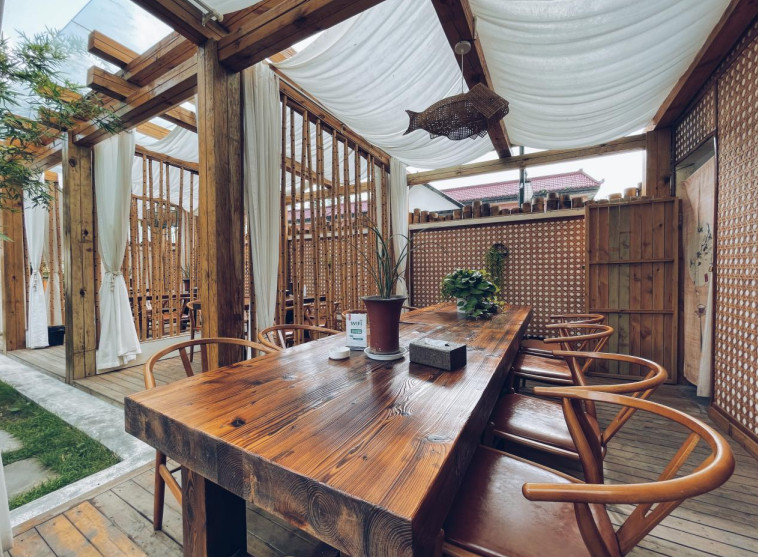 風(fēng)穿過竹林簌簌作響,空氣里是門前的水流帶來的清冽。竹里人家位于竹里巷子,是一方寧靜之地。在這里,竹木、花草相映成趣,環(huán)境優(yōu)美,生態(tài)獨(dú)具一格。色調(diào)合宜、細(xì)節(jié)到位的裝修,透出素雅的品味。