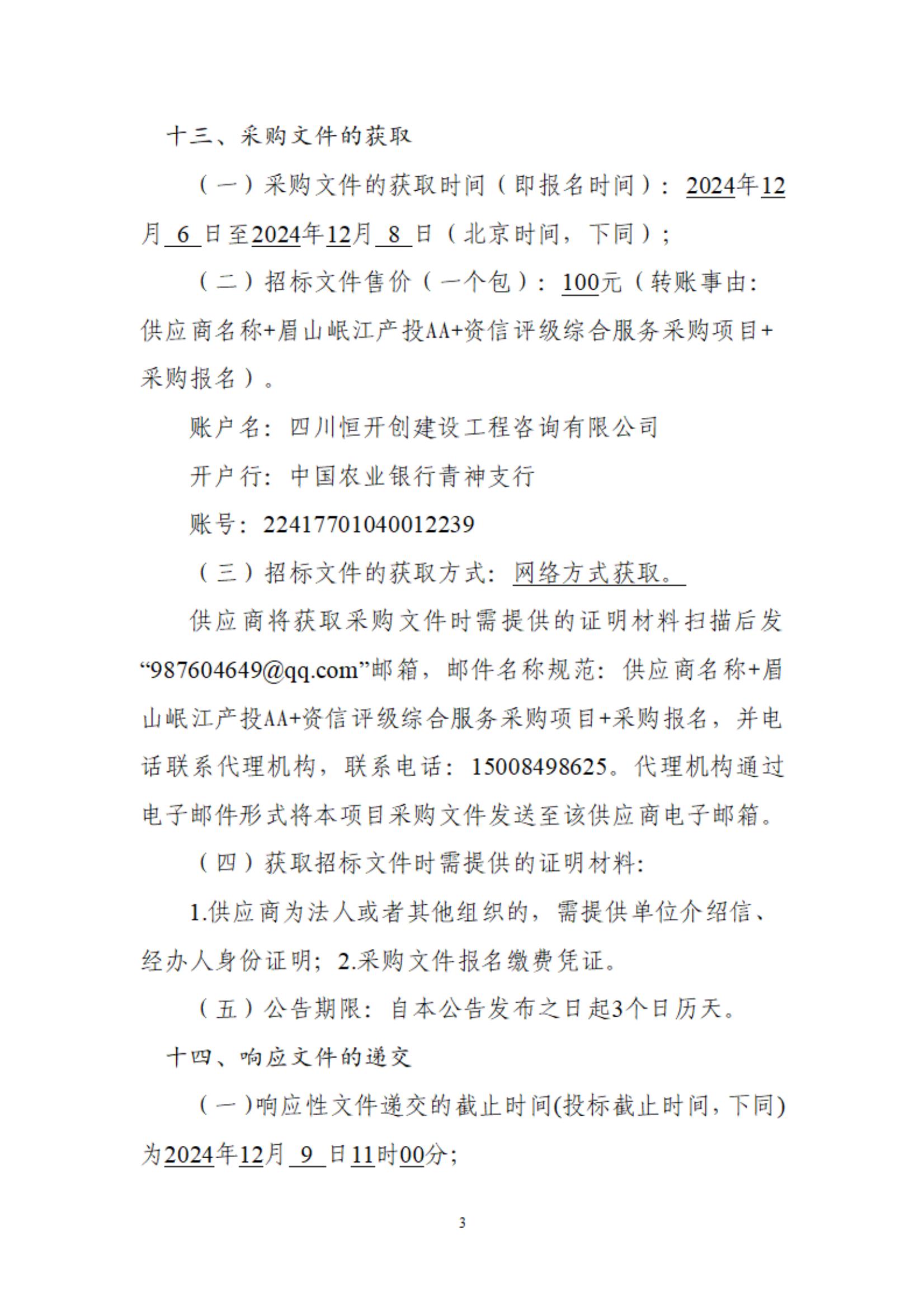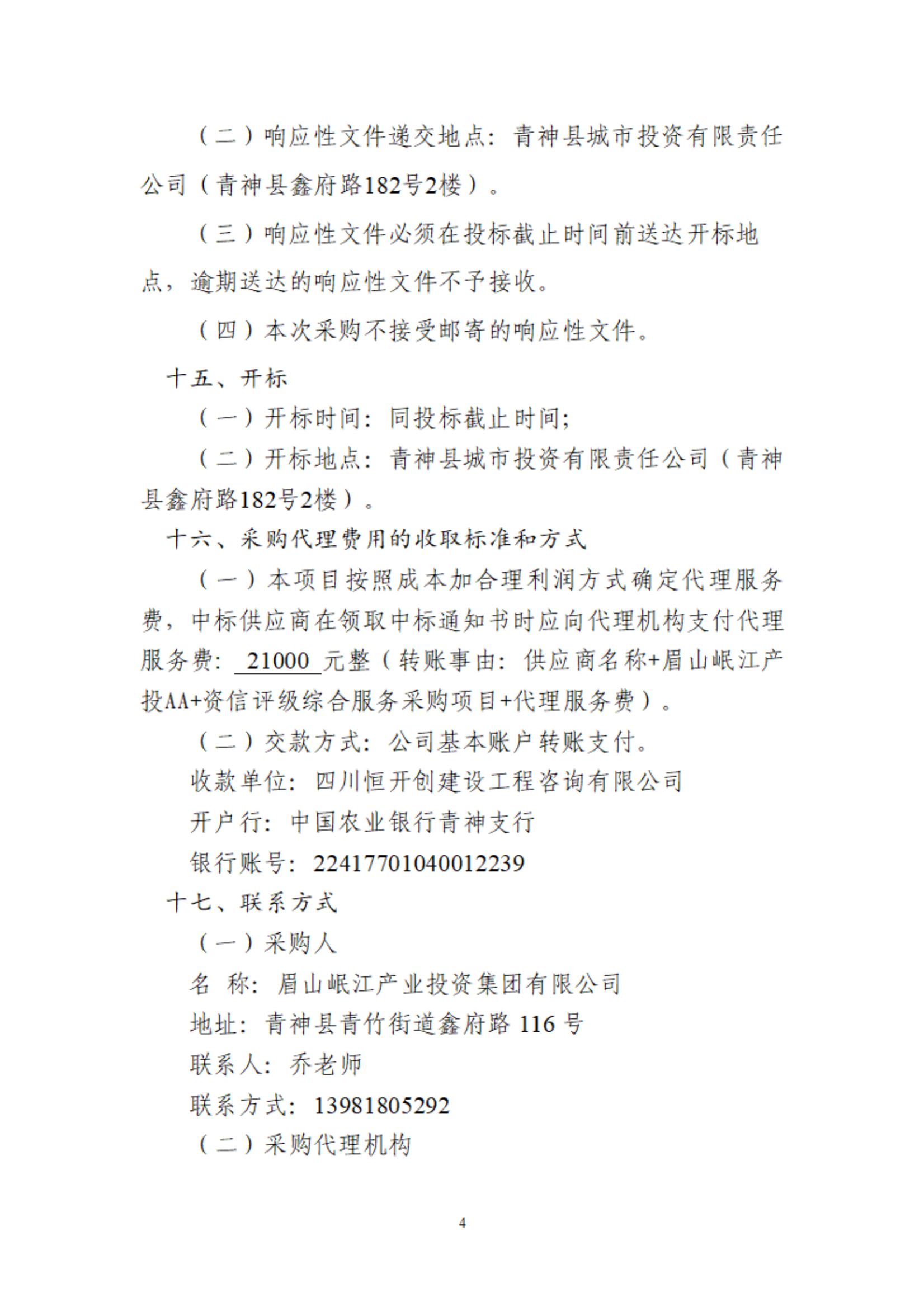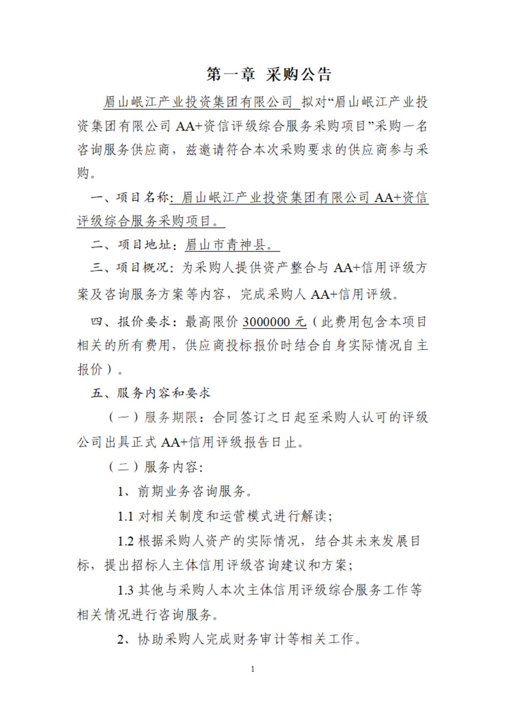 眉山岷江產業(yè)投資集團有限公司AA+資信評級綜合服務采購項目公告